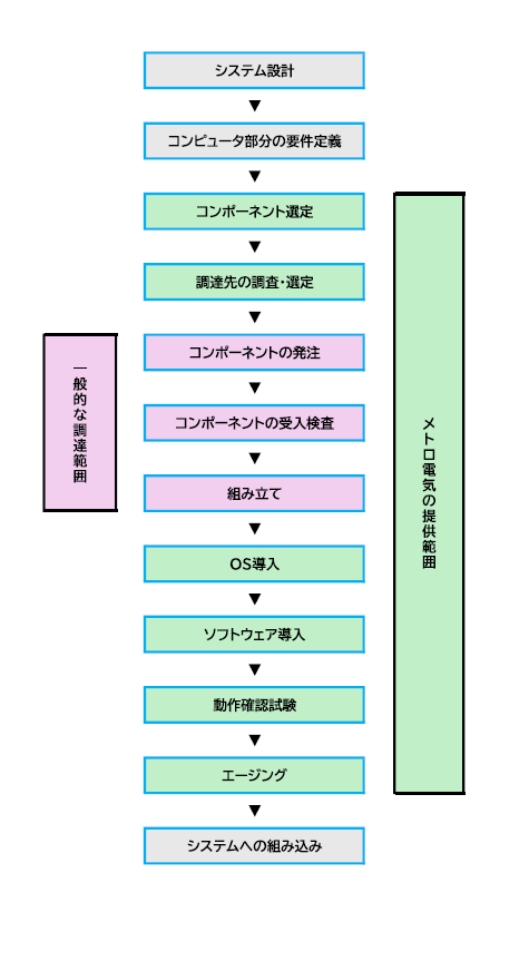 ・コンポーネントの選定や、受入検査から、組み立てまですべて弊社にておこないます。
